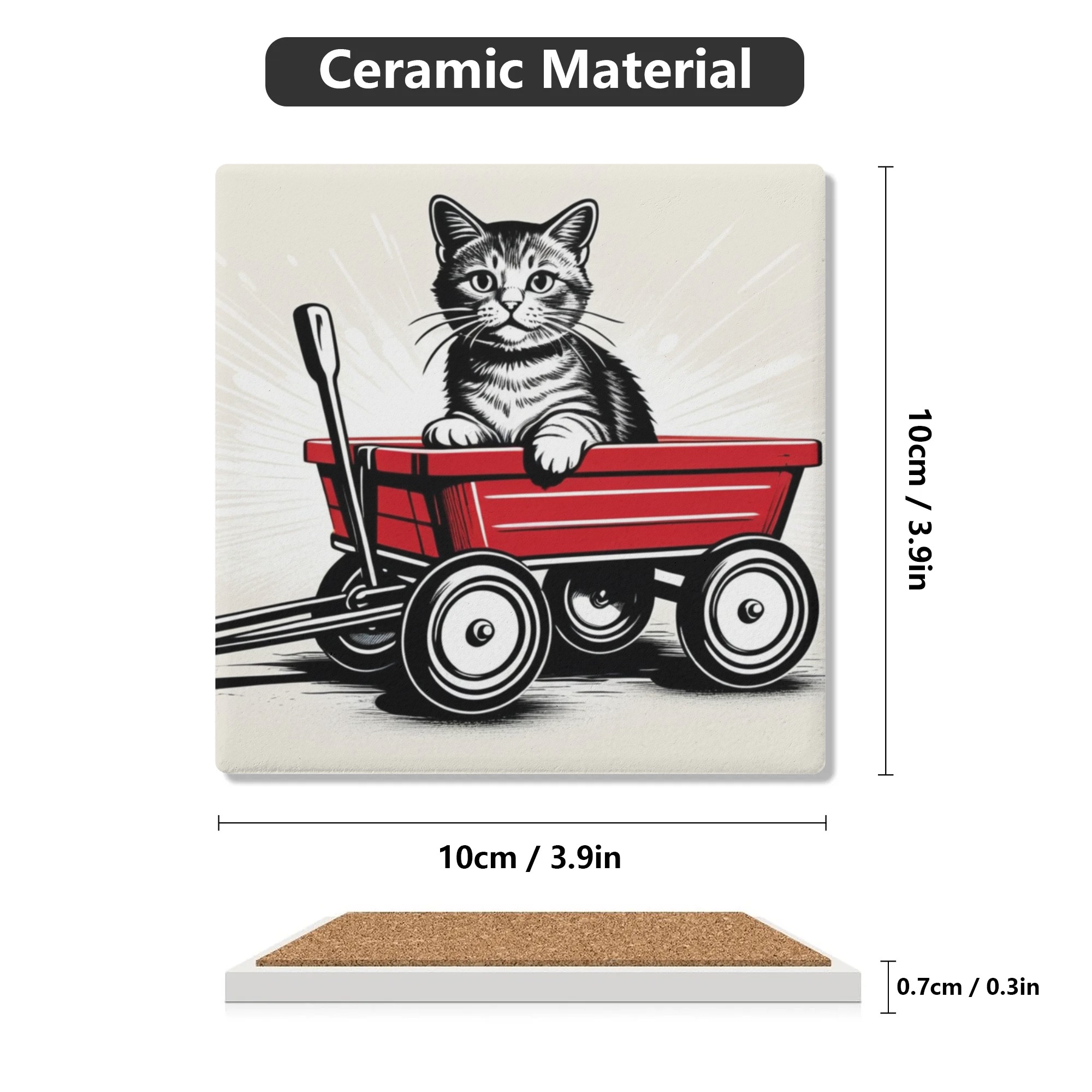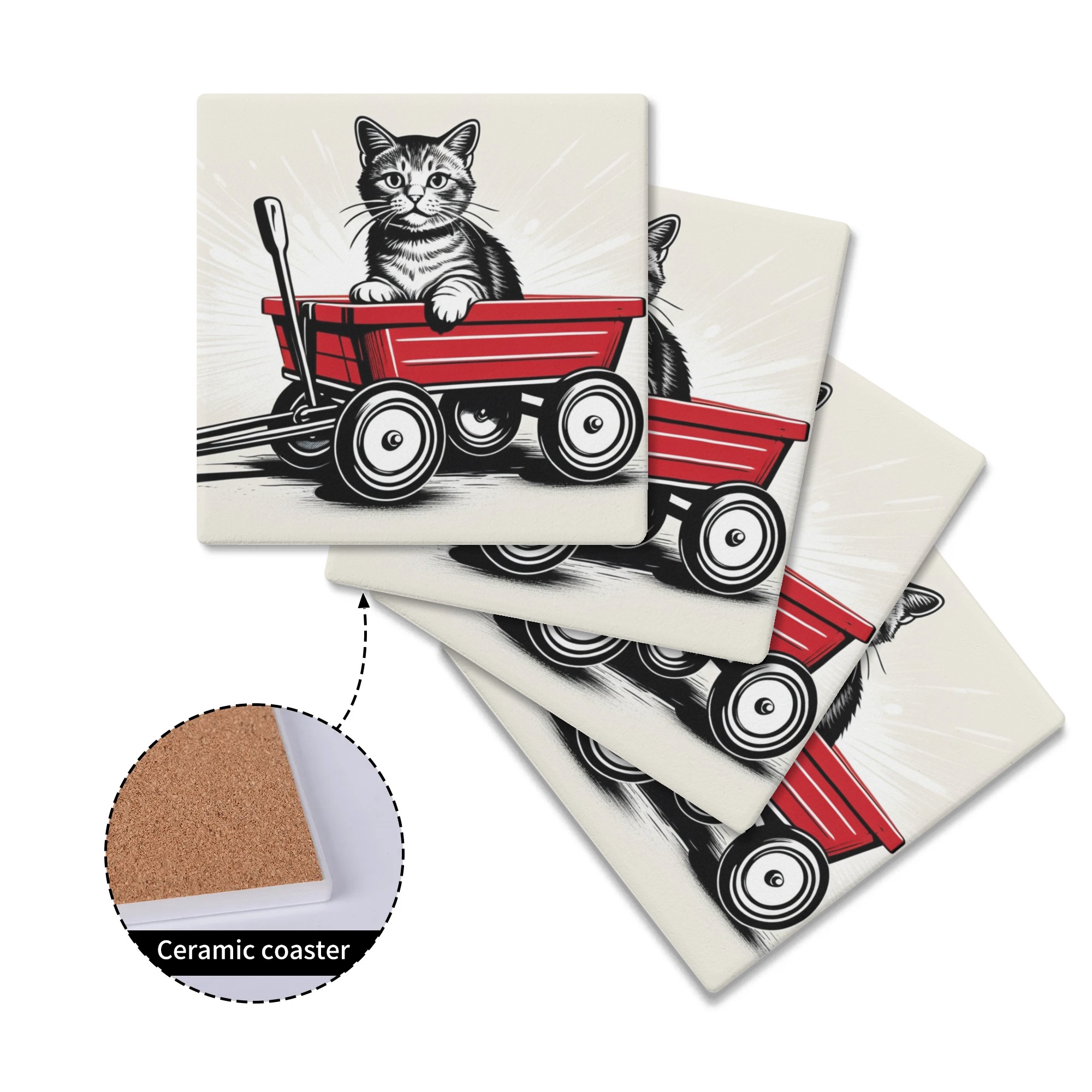 ※商品名:BONATHIA セラミックコースター leojiro24 レトロワゴンとクールキャット<br/><br/> <hr color='#FB5152' size='1'> <b>商品説明</b> <hr color='#FB5152' size='1'> * 環境に優しい高級感のあるセラミック素材のコースター<br/> * 4ピースセットで家族用、パーティーでも便利<br/> * サイズは10cm×10cm<br/> * 底はウッド素材の滑り止め加工で安定感抜群<br/> * 裏側には滑り止め加工<br/> * インテリアや小物置きとしても大活躍<br/> * お祝いやプレゼントにもおススメ<br/> <br/> <hr color='#FB5152' size='1'> <b>生産、配送期間</b> <hr color='#FB5152' size='1'> 生産期間:5~7日<br> EMS運送期間:生産終了後7~14日(最大)<br> <br/> <hr color='#FB5152' size='1'> <b>その他</b> <hr color='#FB5152' size='1'> ※完全受注生産のため発送までにお時間をいただいておりますがご了承ください。<br> ※アイテムの種類や素材によって仕上がりの色味に差異が生じる場合がありますのであらかじめご了承ください。<br> ※サイズは着用時の目安にご参考下さい。<br> ※入荷輸送時に、箱等に多少の汚れ・キズ・角凹みなどが発生する場合がございます。<br> ※上記ご了承の上、お買い求め下さい。<br>