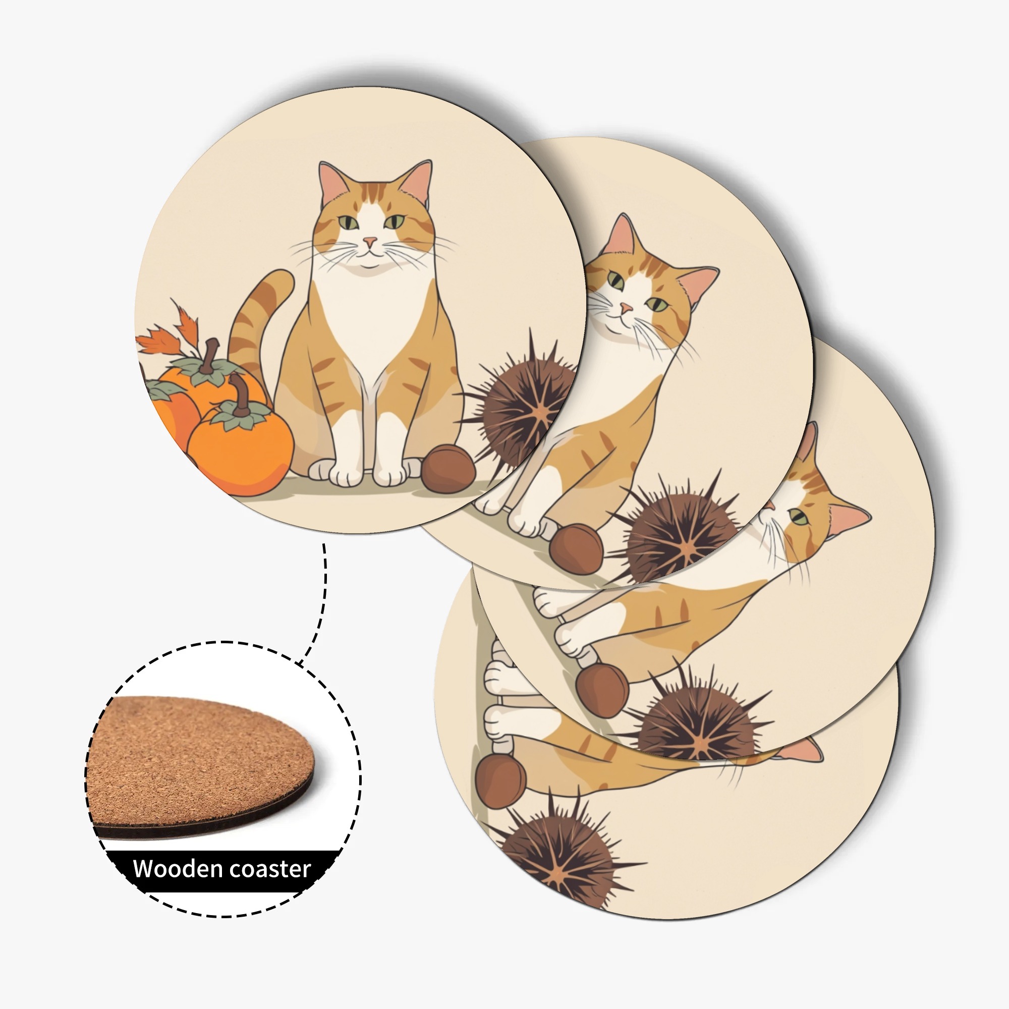 ※商品名:BONATHIA ウッドコースター leojiro24 秋の栗と柿を持つ猫 – ミニマルな和風<br/><br/> <hr color='#FB5152' size='1'> <b>商品説明</b> <hr color='#FB5152' size='1'> * 環境に優しいウッド素材のコースター<br/> * 4ピースセットで家族用、パーティーでも便利<br/> * サイズは9.5cm×9.5cm<br/> * 木製の底は断熱性と安定感抜群<br/> * 抗菌仕様で常に清潔に使用可能<br/> * 裏側には滑り止め加工<br/> * インテリアや小物置きとしても大活躍<br/> * お祝いやプレゼントにもおススメ<br/> <br/> <hr color='#FB5152' size='1'> <b>生産、配送期間</b> <hr color='#FB5152' size='1'> 生産期間:5~7日<br> EMS運送期間:生産終了後7~14日(最大)<br> <br/> <hr color='#FB5152' size='1'> <b>その他</b> <hr color='#FB5152' size='1'> ※完全受注生産のため発送までにお時間をいただいておりますがご了承ください。<br> ※アイテムの種類や素材によって仕上がりの色味に差異が生じる場合がありますのであらかじめご了承ください。<br> ※サイズは着用時の目安にご参考下さい。<br> ※入荷輸送時に、箱等に多少の汚れ・キズ・角凹みなどが発生する場合がございます。<br> ※上記ご了承の上、お買い求め下さい。<br>