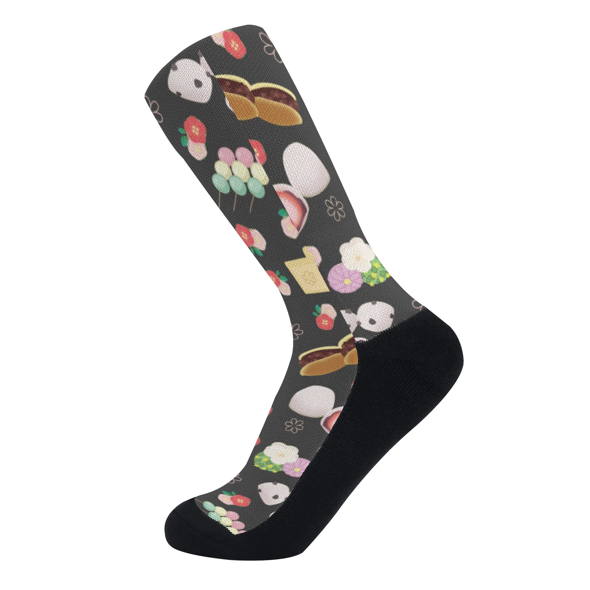※商品名:BONATHIA ソックス mai 和菓子柄(黒蜜)<br /> <br /> <hr color='#FB5152' size='1'> <b>商品説明</b> <hr color='#FB5152' size='1'> * ポリエステルとコットンの混紡素材のソックス<br> * 縫い目のないつま先としっかりとフィットする履き口が特徴<br> * かかと部分とつま先部分のクッション性に特化した縫製<br> * 吸水・発汗に優れサラっとした履き心地<br> * 足が細く見える絶妙な長さ<br> * 足元からのおしゃれなコーディネート<br> * スポーツやトレッキングにもおススメ<br /> <br /> <hr color='#FB5152' size='1'> <b>生産、配送期間</b> <hr color='#FB5152' size='1'> 生産期間:3~5日<br> EMS運送期間:生産終了後14~28日(最大)<br> (新型コロナウイルス感染症拡大の影響により、お届け時期が大幅に遅くなる可能性があります)<br> <br /> <hr color='#FB5152' size='1'> <b>その他</b> <hr color='#FB5152' size='1'> ※完全受注生産のため発送までにお時間をいただいておりますがご了承ください。<br> ※アイテムの種類や素材によって仕上がりの色味に差異が生じる場合がありますのであらかじめご了承ください。<br> ※サイズは着用時の目安にご参考下さい。<br> ※入荷輸送時に、箱等に多少の汚れ・キズ・角凹みなどが発生する場合がございます。<br> ※上記ご了承の上、お買い求め下さい。<br>