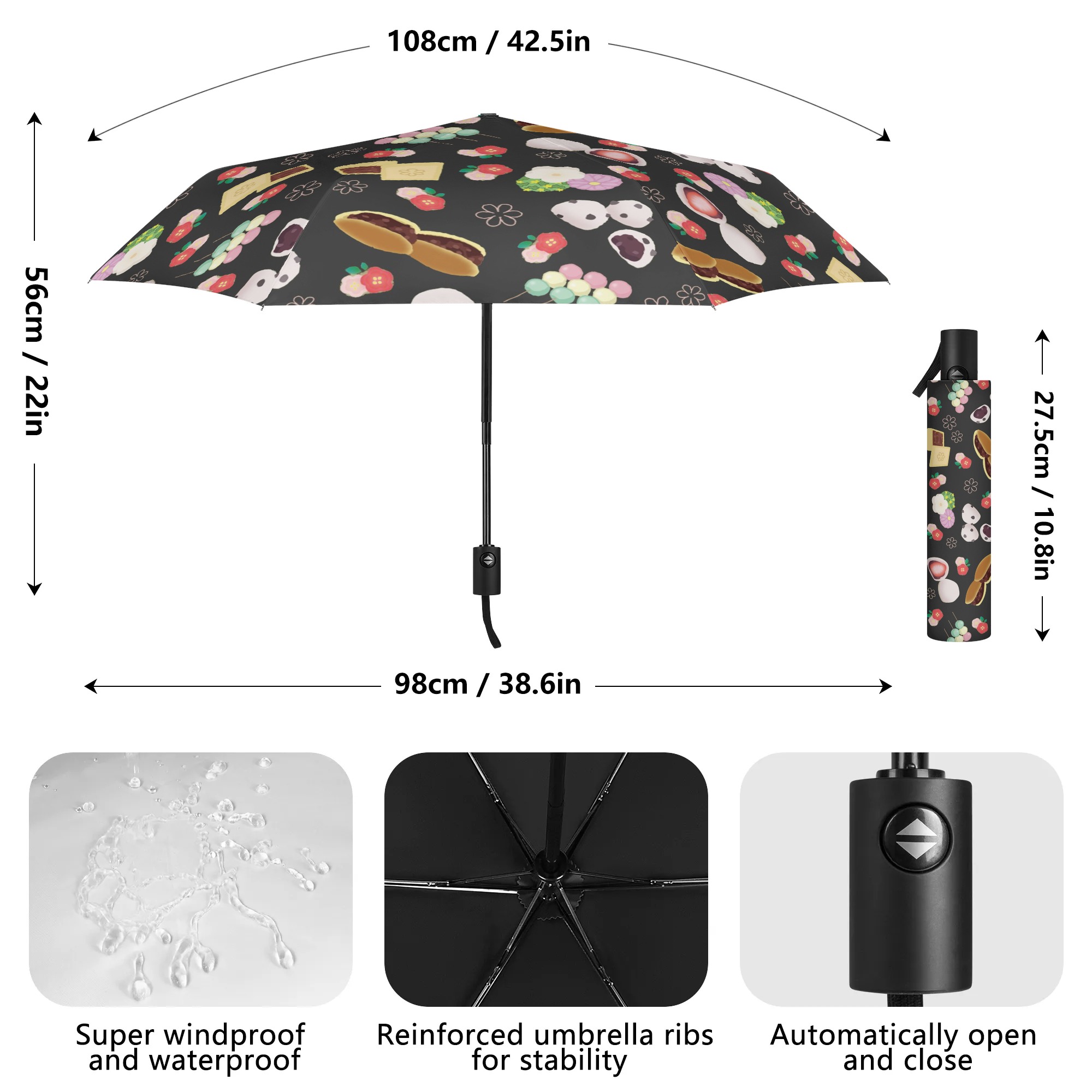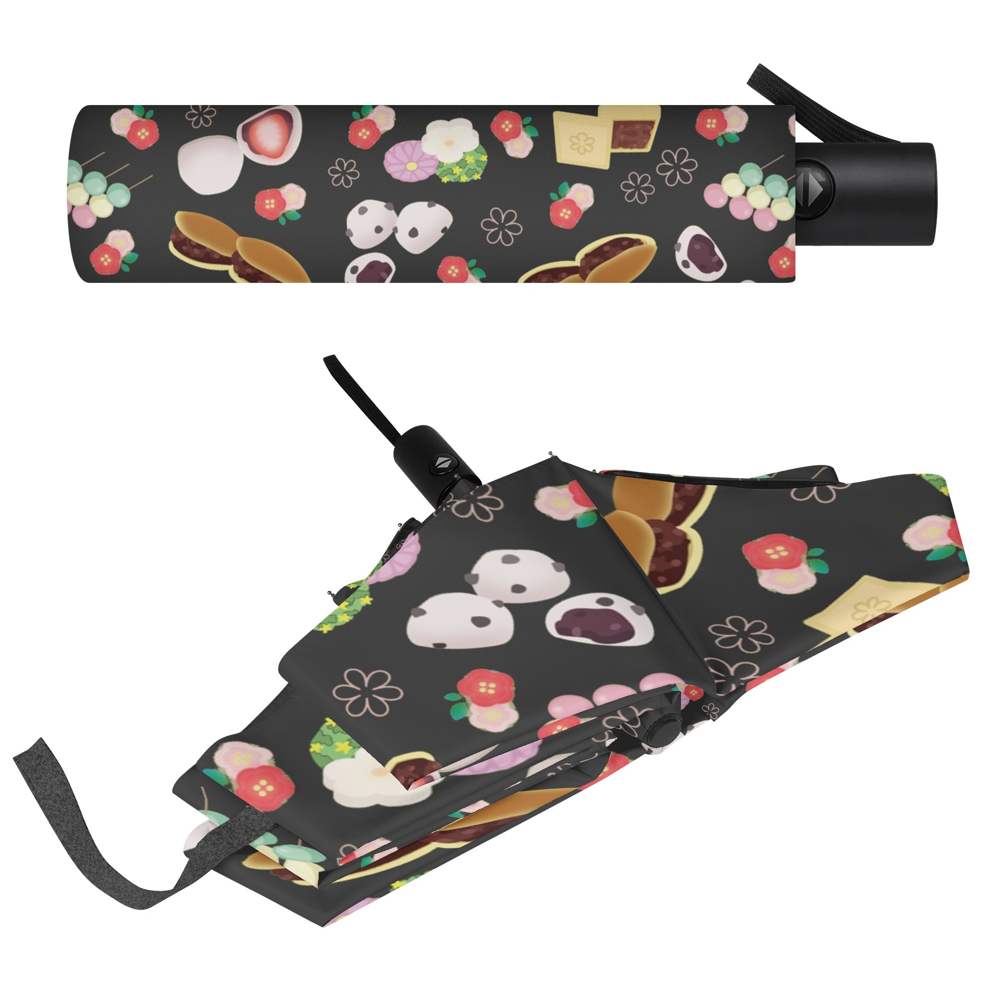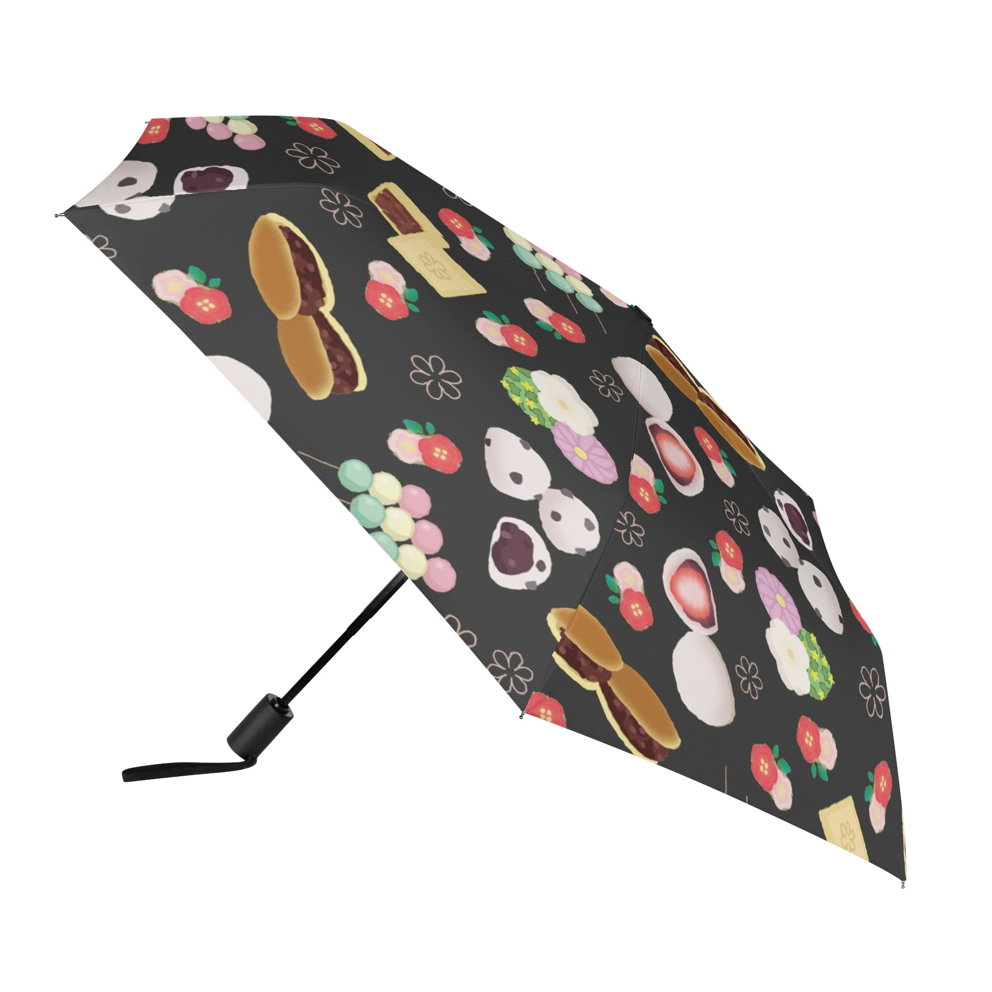 ※商品名:BONATHIA 折り畳み傘 外面デザイン mai 和菓子柄(黒蜜)<br/> <br/> <hr color='#FB5152' size='1'> <b>商品説明</b> <hr color='#FB5152' size='1'> * 環境にやさしいポリエステル素材の折り畳み傘<br/> * 外面とカバーにプリント可能<br/> * ワンタッチの手動式で簡単開閉<br/> * 晴雨兼用で、日傘としてもおススメ<br/> * 撥水性、耐久性にも優れ、オールシーズン大活躍<br/> * アウトドア、タウンユース、幅広いシーンで使用可能<br/> <br/> <hr color='#FB5152' size='1'> <b>生産、配送期間</b> <hr color='#FB5152' size='1'> 生産期間:5~7日<br> EMS運送期間:生産終了後10~21日(最大)<br> <br/> <hr color='#FB5152' size='1'> <b>その他</b> <hr color='#FB5152' size='1'> ※完全受注生産のため発送までにお時間をいただいておりますがご了承ください。<br> ※アイテムの種類や素材によって仕上がりの色味に差異が生じる場合がありますのであらかじめご了承ください。<br> ※サイズは着用時の目安にご参考下さい。<br> ※入荷輸送時に、箱等に多少の汚れ・キズ・角凹みなどが発生する場合がございます。<br> ※上記ご了承の上、お買い求め下さい。<br>