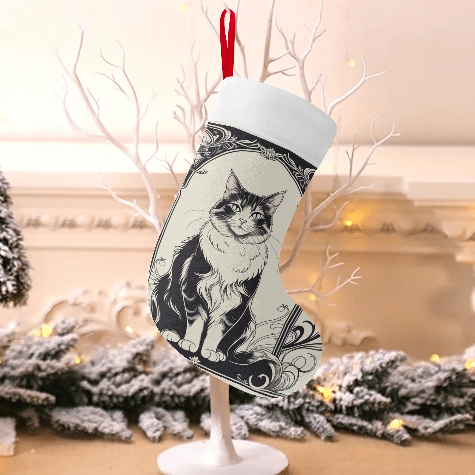 白黒デザインのアールヌーボー猫